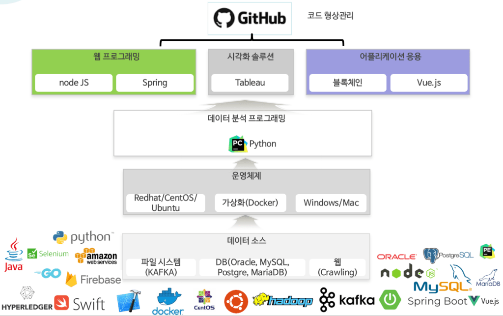 소프트웨어가 구동되는 운영체제 실습 빅데이터 활용 및 분석을 위한 실습 블록체인의 구동원리를 이해하는 실습 웹 기반 시각화 및 데이터 조작 실습