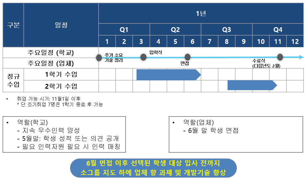 스마트금융과 학사일정 (1년, 11월 초 취업가능 )